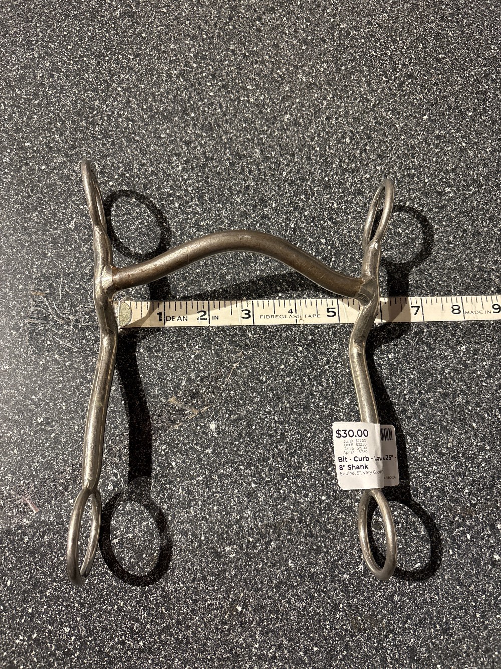 Low port curb bit with 8" shanks, mouth is right in between 5" and 5.25", potentially handmade.