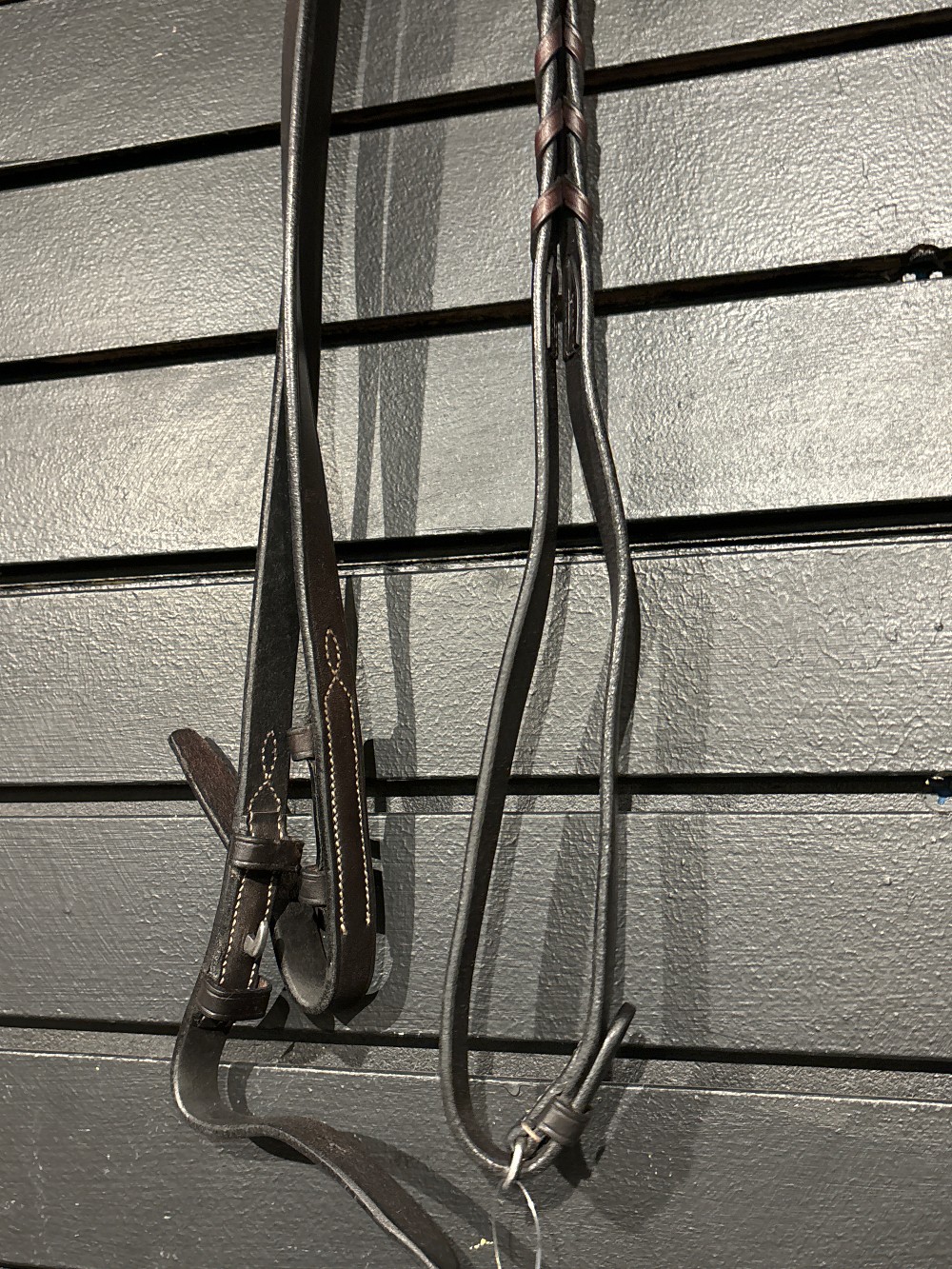 Leather laced reins in havana, full size in excellent condition.