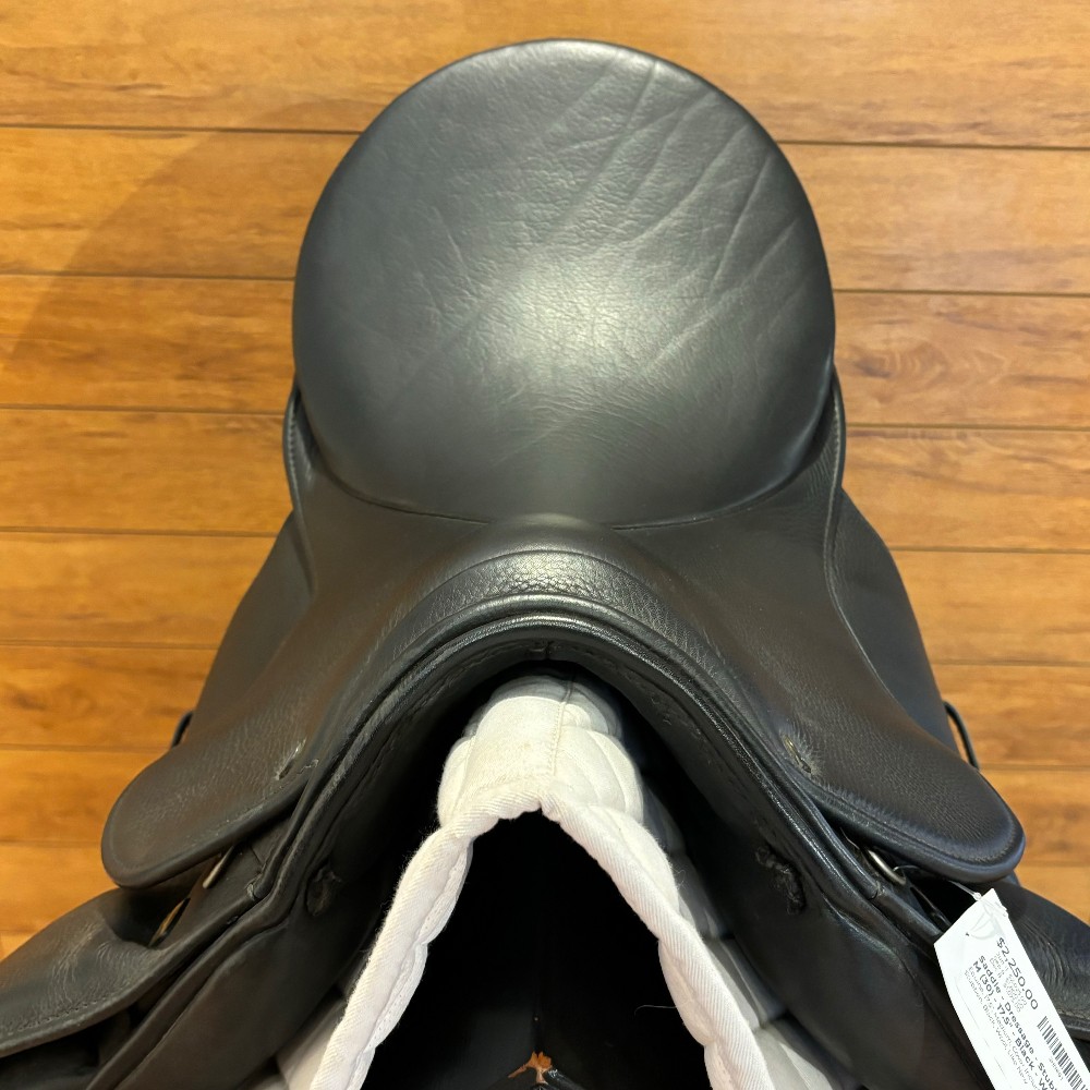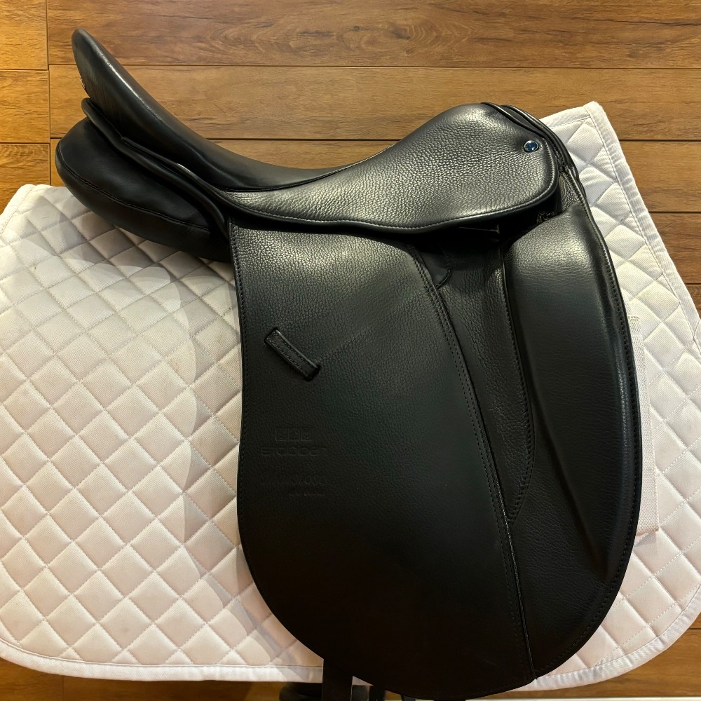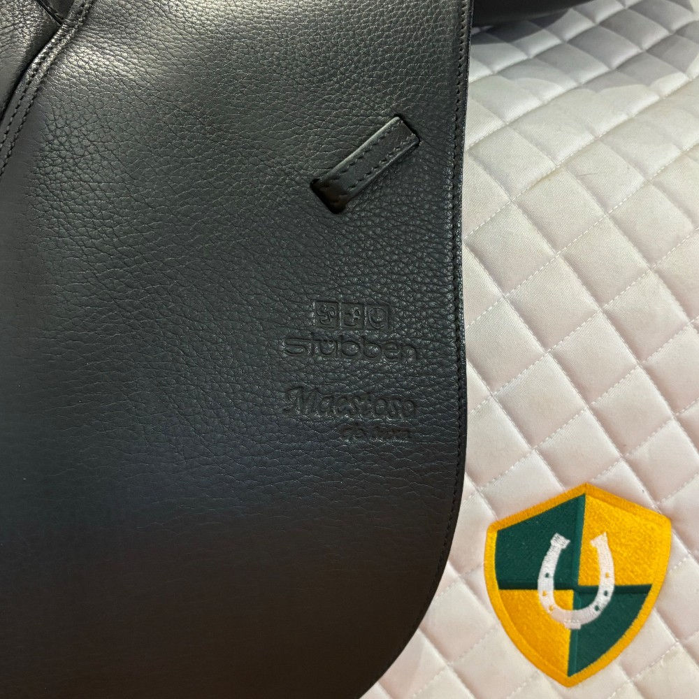 Like NEW Stubben Maestoso Deluxe dressage saddle, 17.5" seat and stamped medium (30) gullet, wool flocked and saddle cover included.