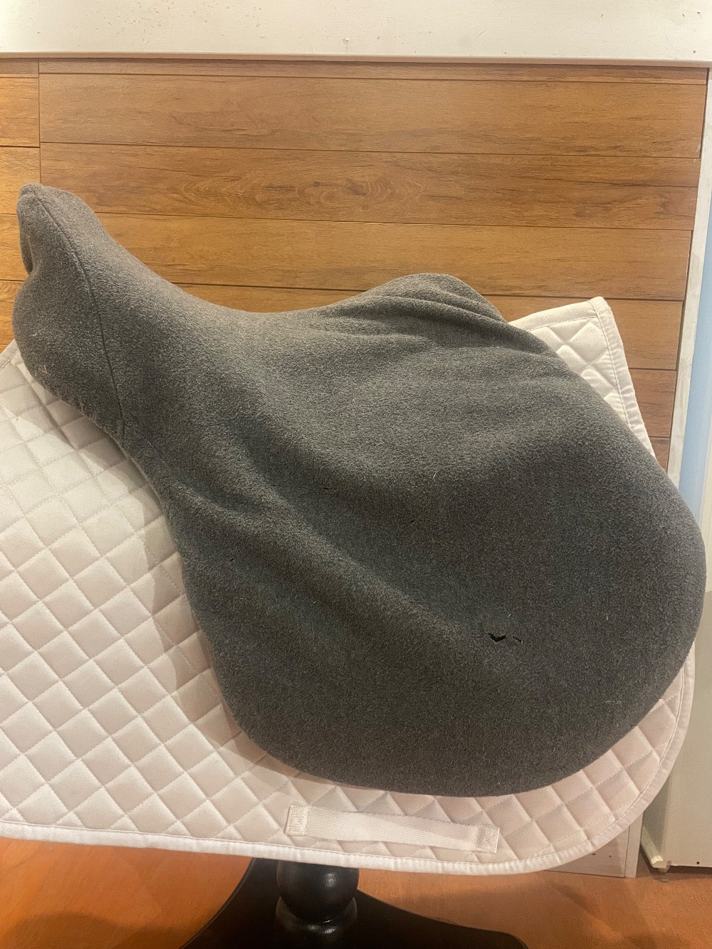 Grey Equinox saddle cover, has some small holes but overall in good condition.